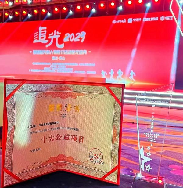 图 1 : 海联金桥·李锦记希望 厨师项目荣获“追光2 023 ·四川十大公益项目”