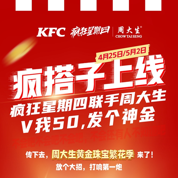 周大生竟然和肯德基疯狂星期四一起发神金了?!