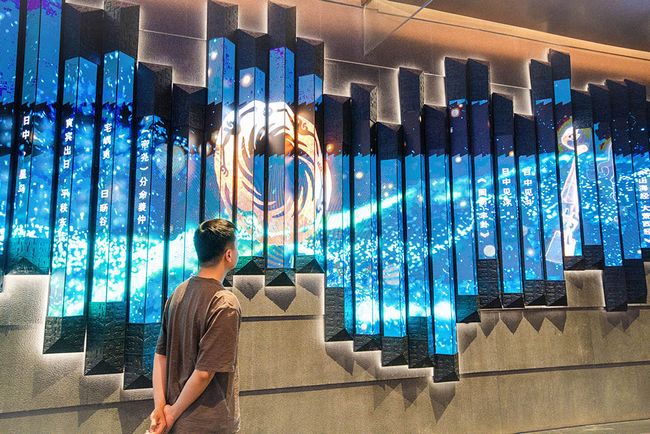 展厅正中的运河之魂LED屏以其流水装置屏的形式,展现了“一脉承古今,一眼三千年”的影像主题。这里,河流不仅是地理上的纽带,更是文化与历史的传承载体。